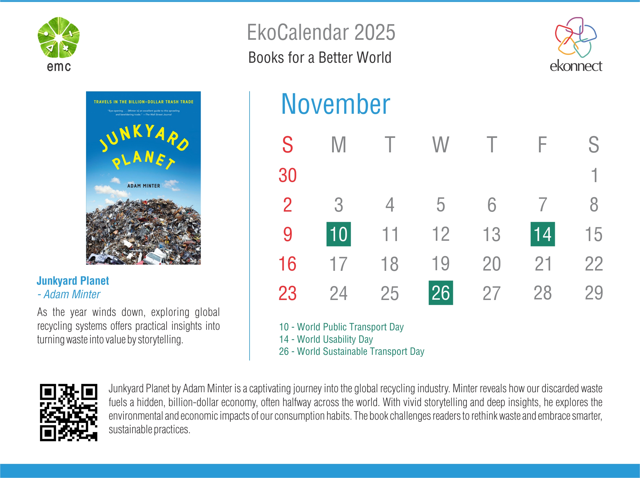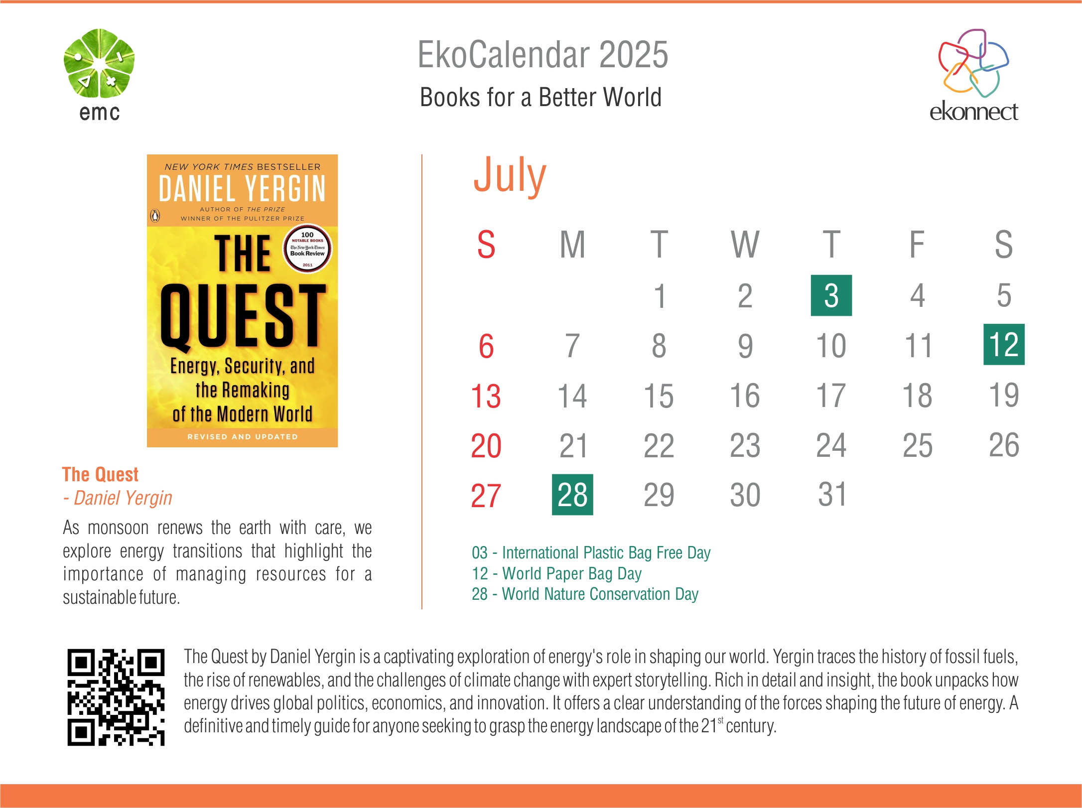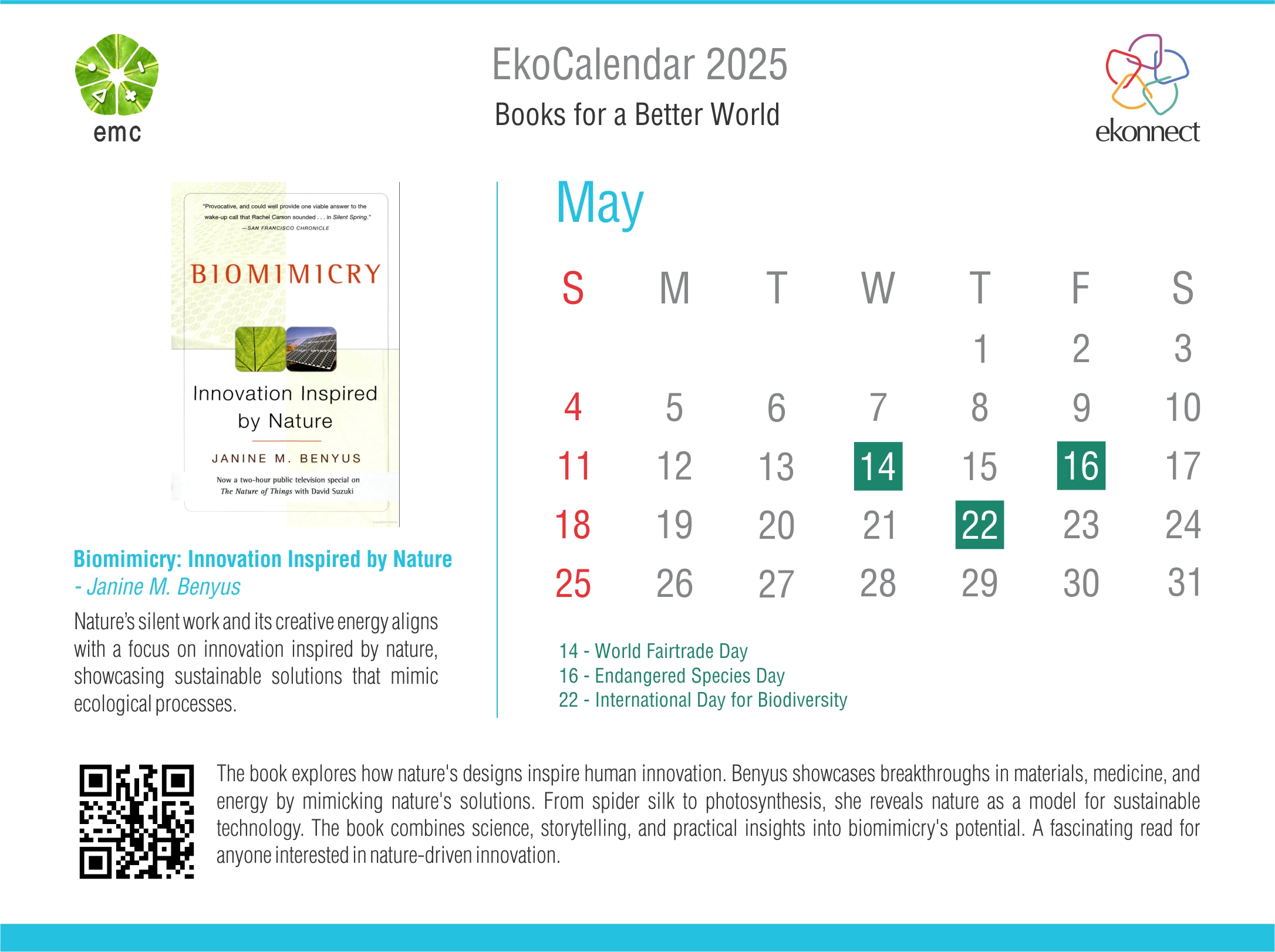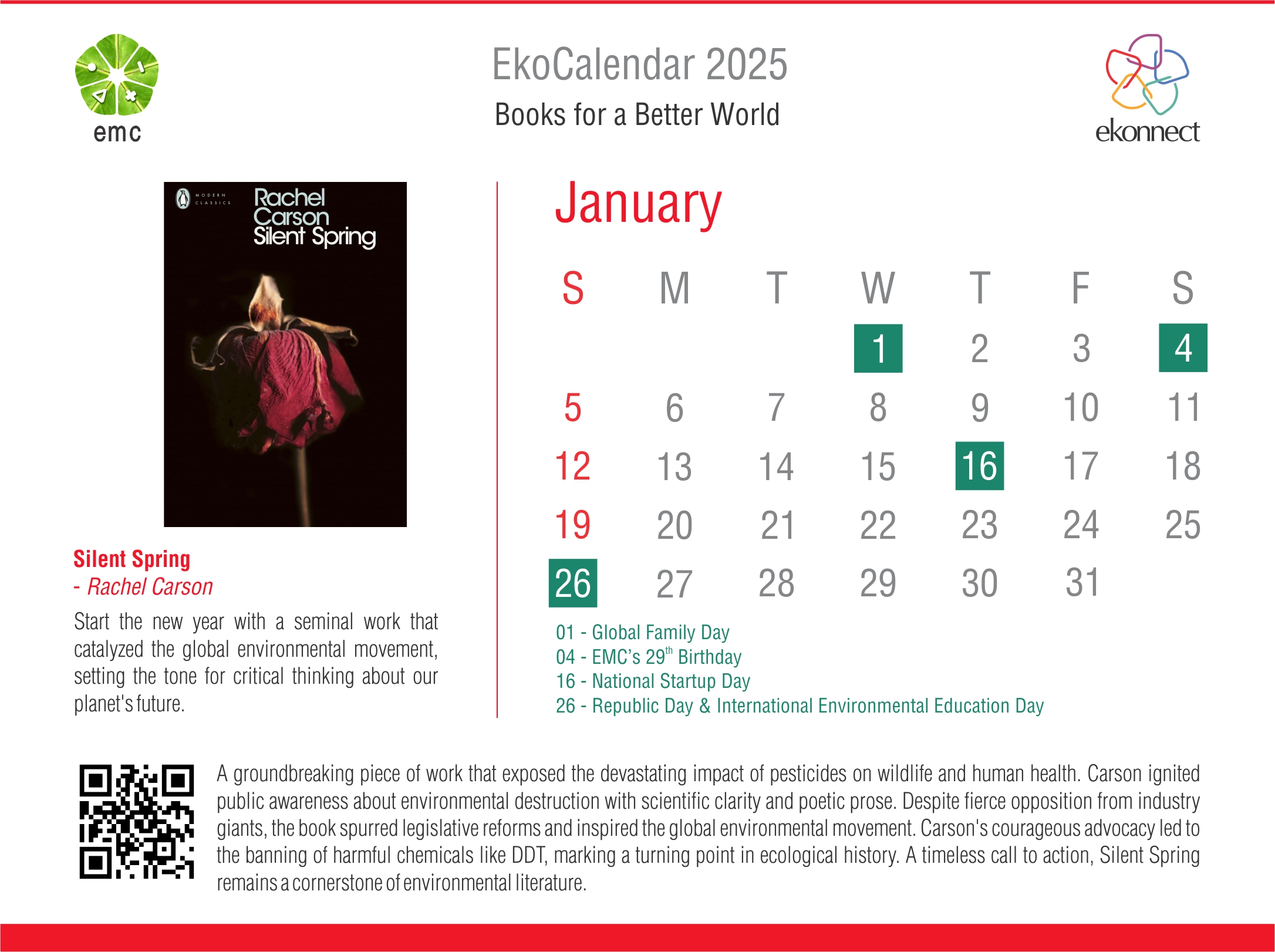 Ekonnect Knowledge Foundation and Environmental Management Centre Pvt Ltd are thrilled to present EkoCalendar 2025, your companion get introduced to some of the most influential books to appreciate and understand and the importance of sustainability. The collection of 12 books that we introduce to you every month will inspire you to set your own library and continue adding more to your collection