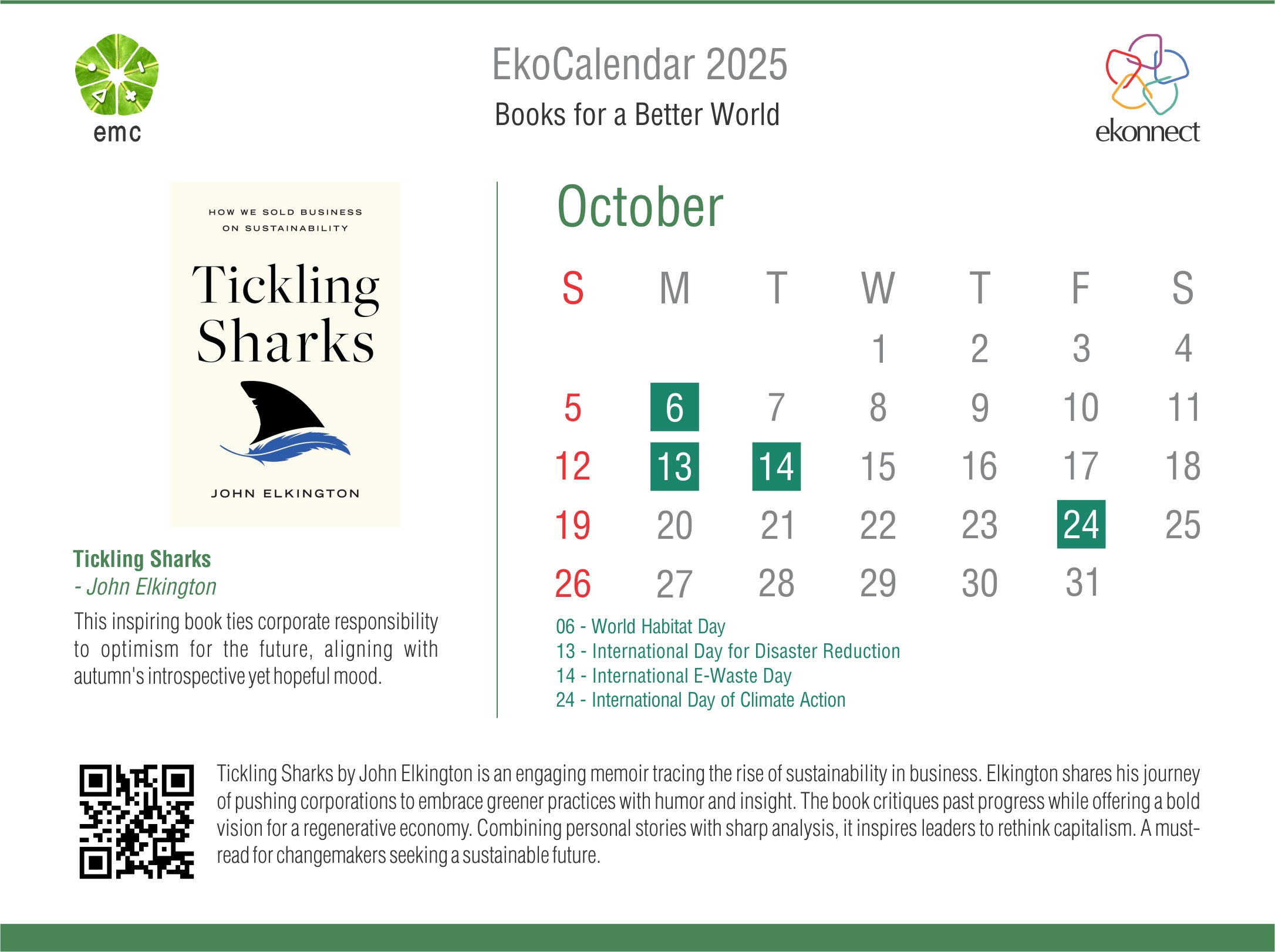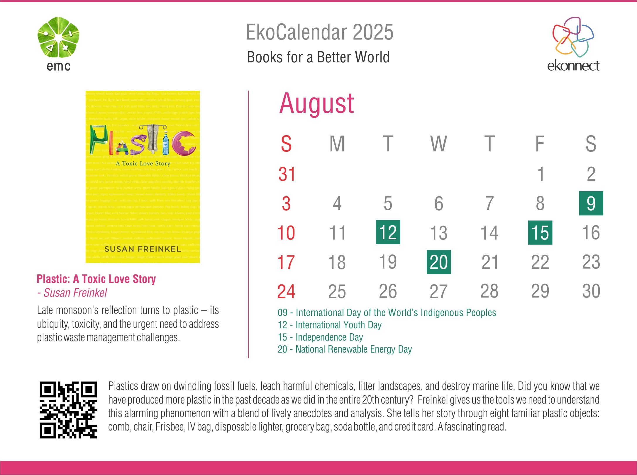 Can’t wait to explore the world of sustainability-related books? Download your free copy of the e-EkoCalendar 2025 through our website. Don’t forget to give us your feedback (DOWLOADING WILL ONLY BE POSSIBLE IF A FORM IS FILLED IN WITH DETAILS SUCH A NAME, ORGANIZATION, LAST BOOK READ ON SUSTAINABILITY AND EMAIL ID. WE WILL NEED TO SEND AN EMAIL WITH A VERIFICATION LINK AND THEN A FOLLOW-UP EMAIL ASKING FOR FEEDBACK)